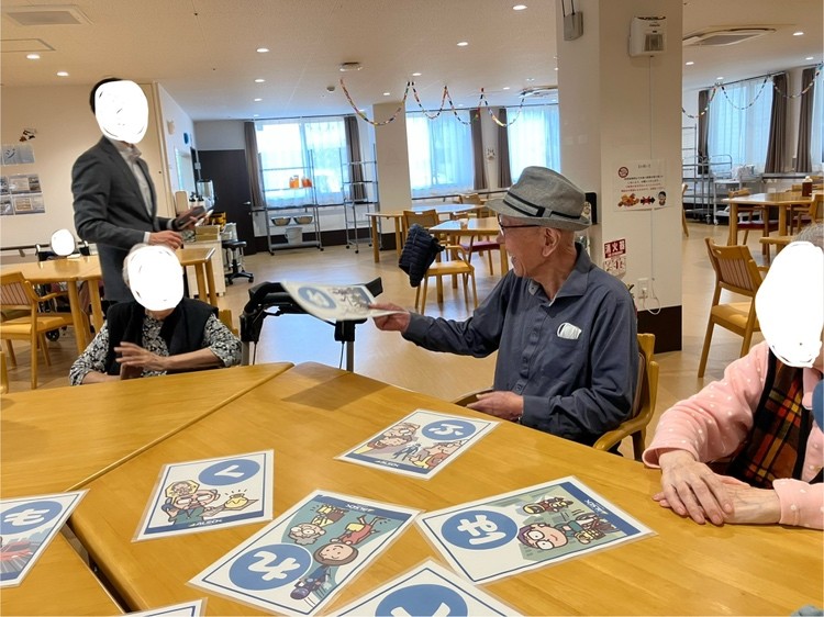 大きくて見やすいカルタでした。入居者の皆様も「大きなカルタやな~」とにこにこ😊