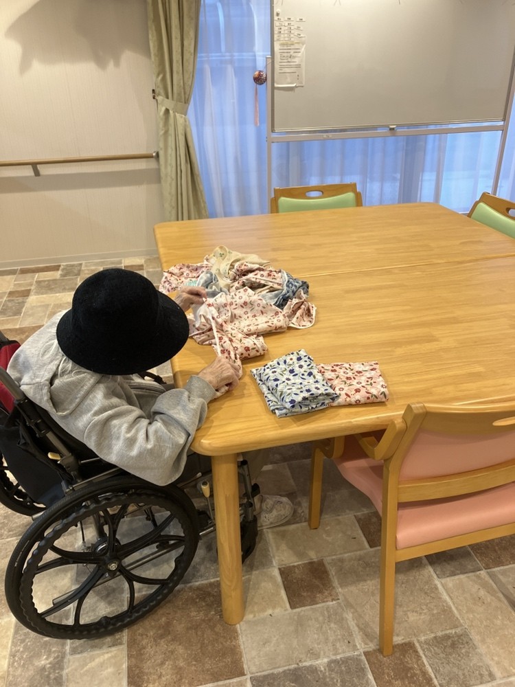 たまにですが「なにかする事ないか?」など聞いてくださるので、洗濯物をたたむお手伝いをお願いしています