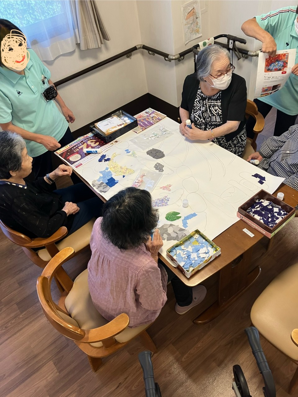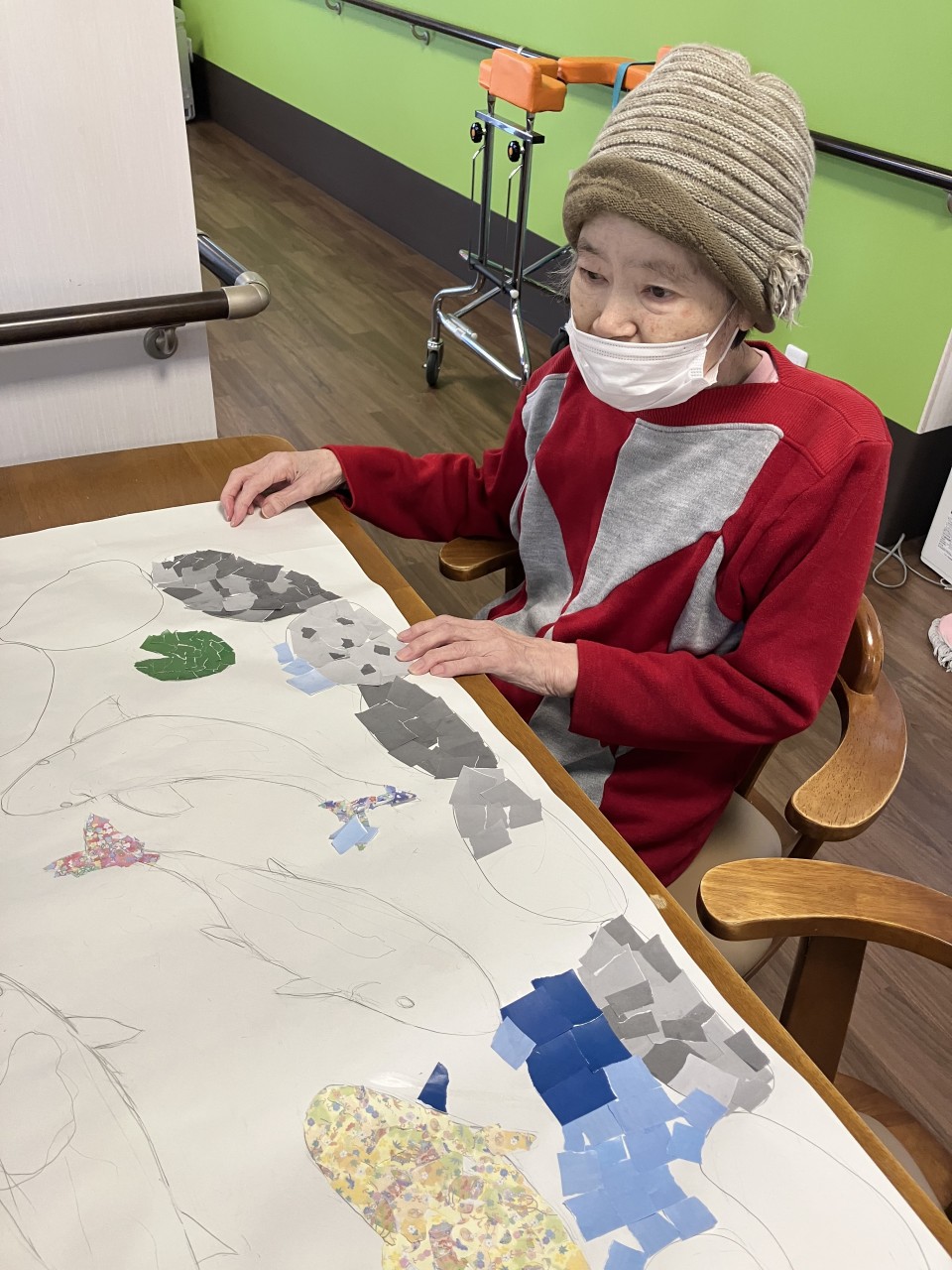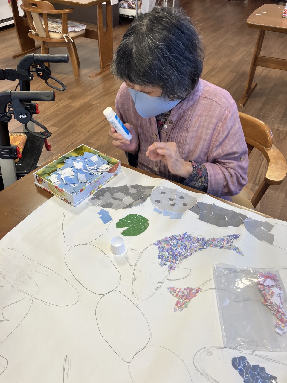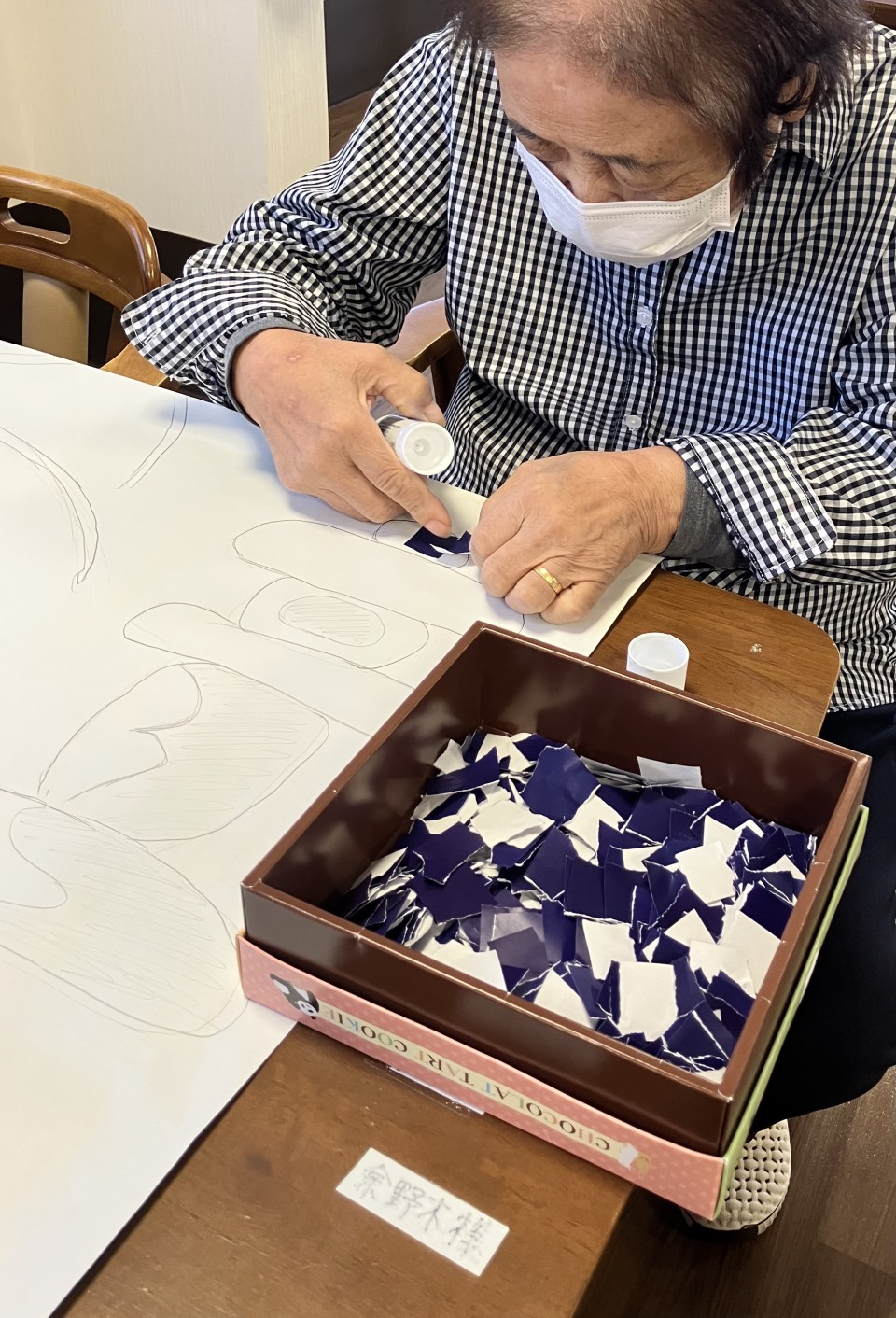 ちぎり絵をしよう!という案があり、利用者様にも参加していただいて作品作りを開始しました。