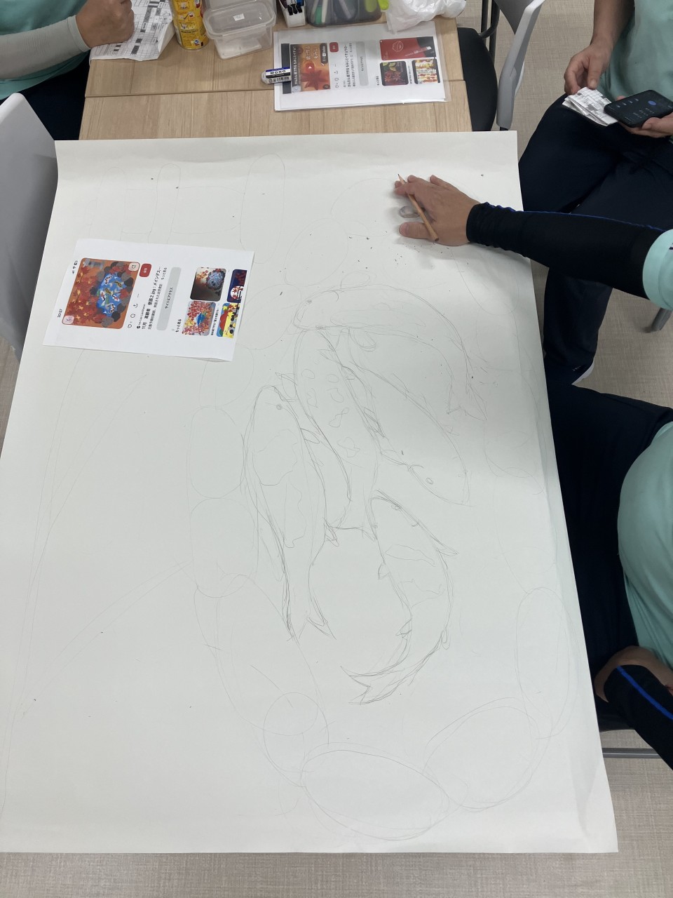 まずは、職員が下絵を描き、ああでもない~こうでもない~と、あちらこちらから声が上がりました。