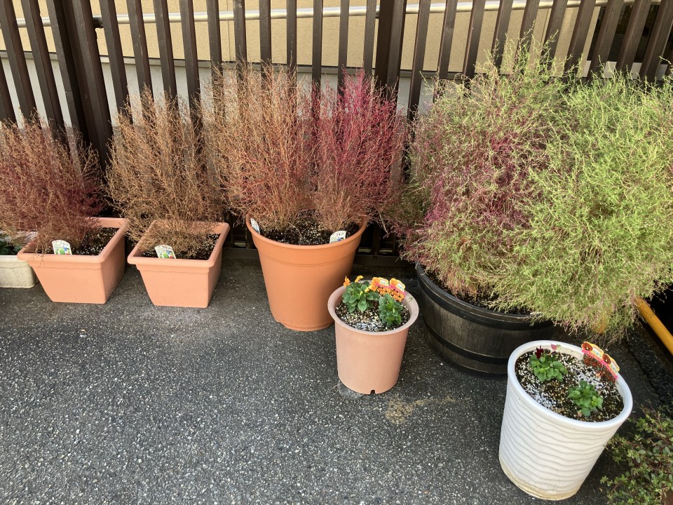 夏の間は、🌳ふわふわ緑のコキアもすっかり😡色づき、、、