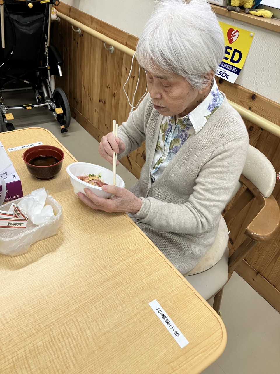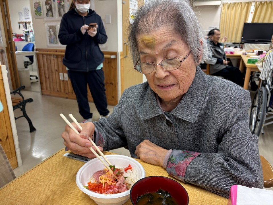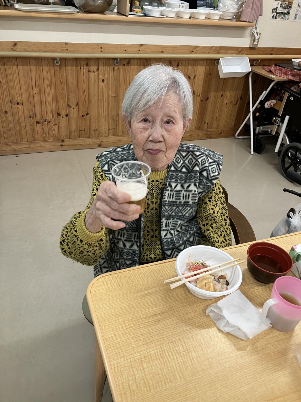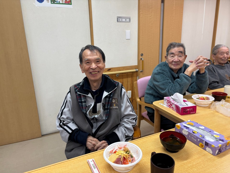 でも、入居者さんは🍣海鮮丼・🍮デザート&🍺Nonビールをご満悦いただいたようです🍀