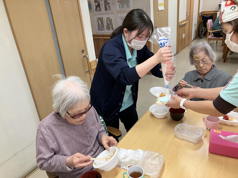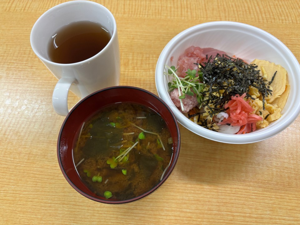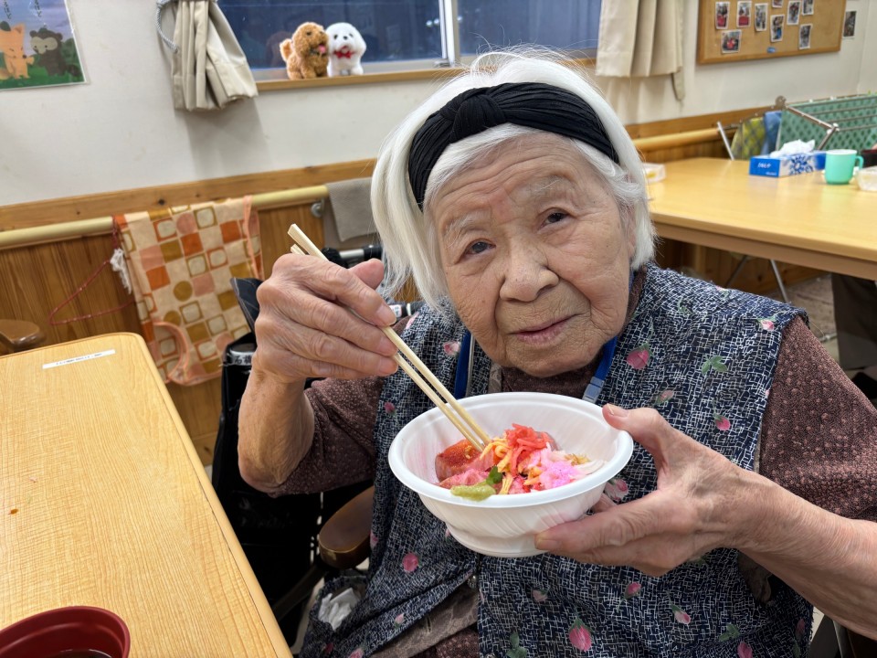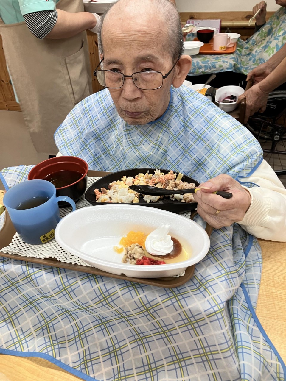 でも、入居者さんは🍣海鮮丼・🍮デザート&🍺Nonビールをご満悦いただいたようです🍀