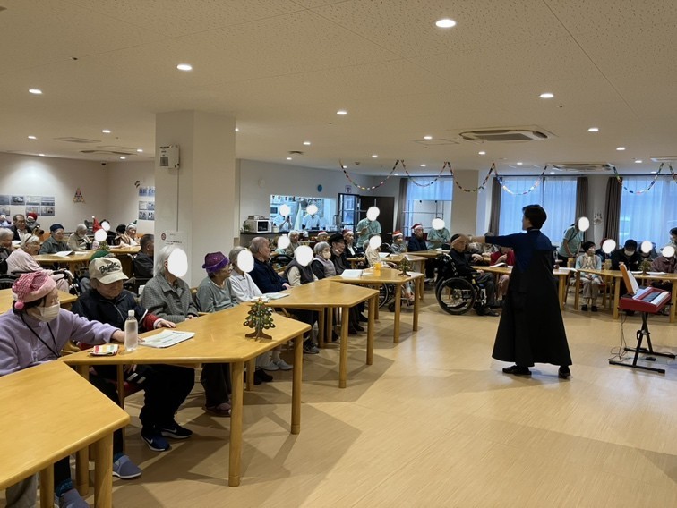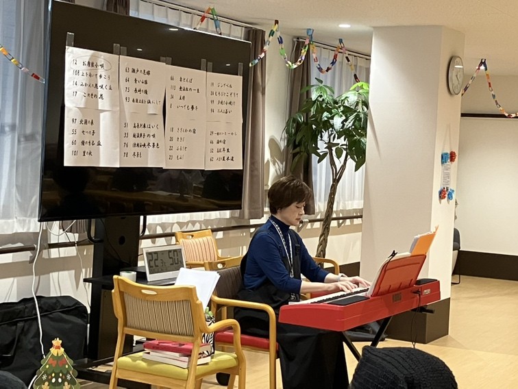 ケアマネジャーさんがピアノで懐メロを弾いてくださり