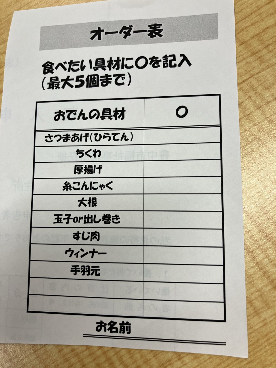 🍢オーダー表も作って、お好きな具材を選んで頂きました✌