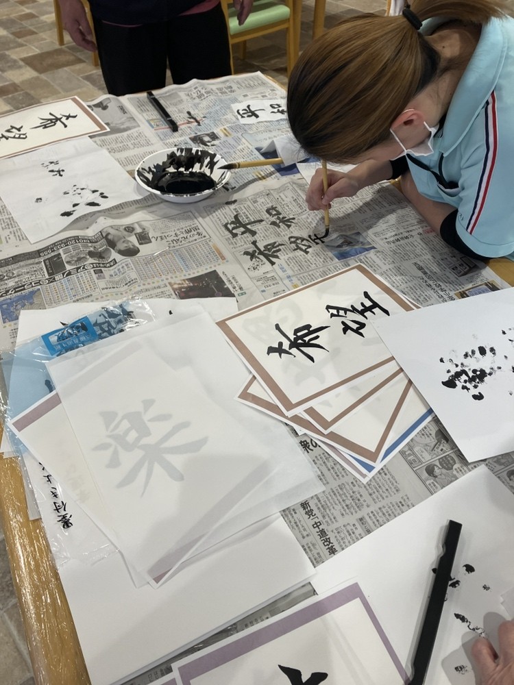 お手本を見ながら、皆さん各々で書初めをされました🖌🎍