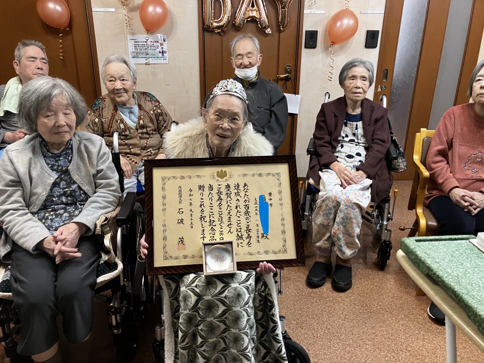ヒューマンハウスタナカでは1月に100歳のお誕生日を迎えた利用者様がいらっしゃいました👏