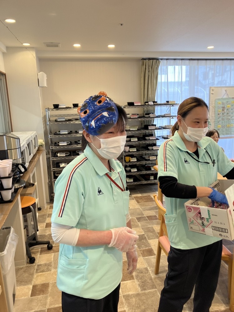 大人の対応でしっかりと豆まきに参加してくださる方と