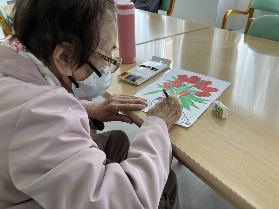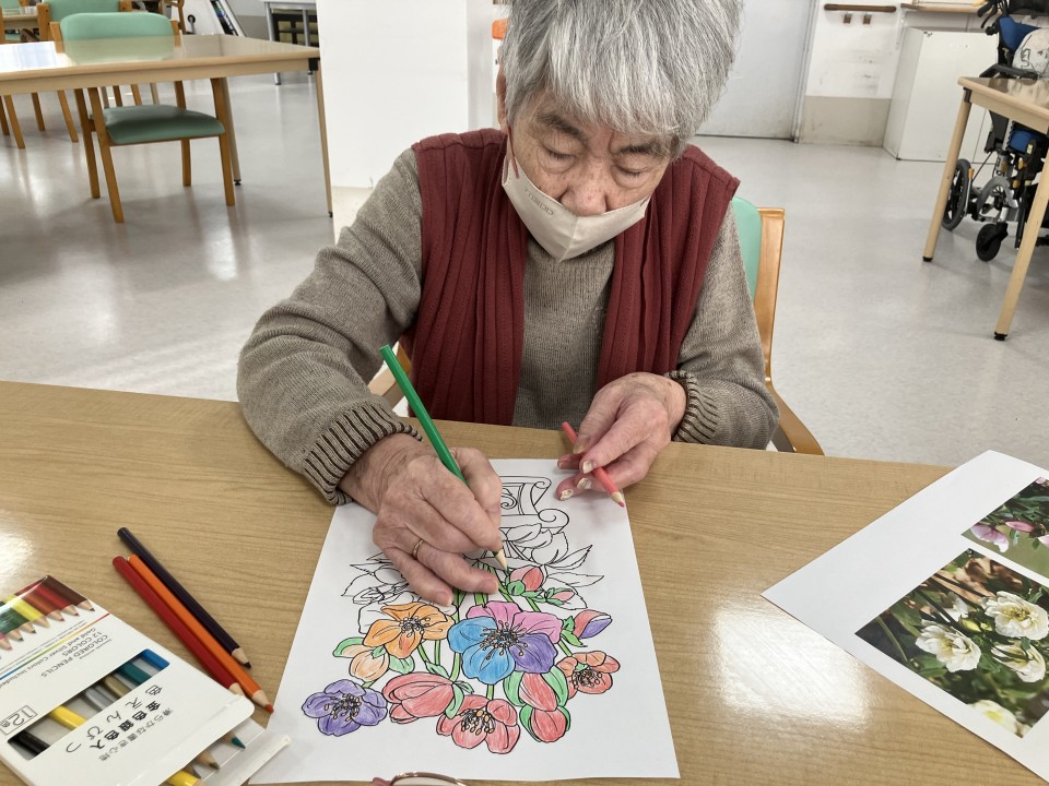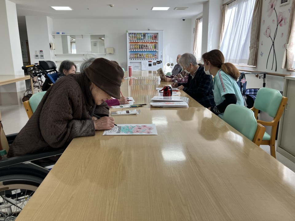サンシャインコート豊川では、毎週・火曜日「塗り絵レク」を行なっています!
