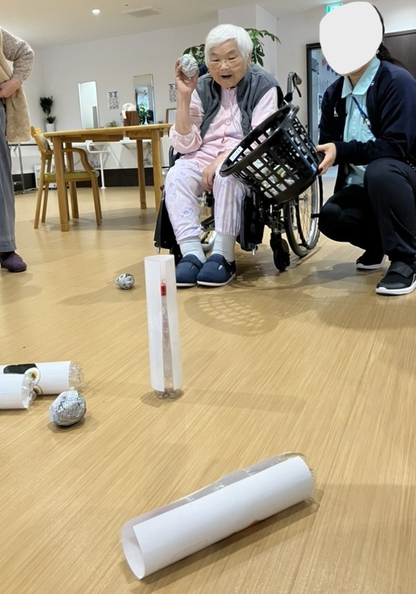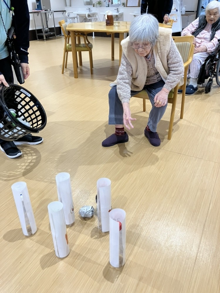 ”ボーリング”というより”スローイング”でピンを倒すパワフルさ☺