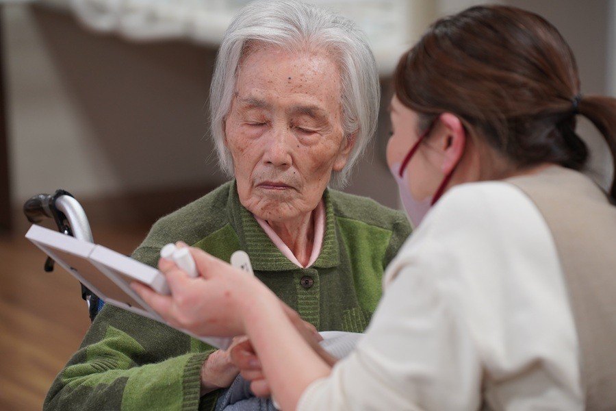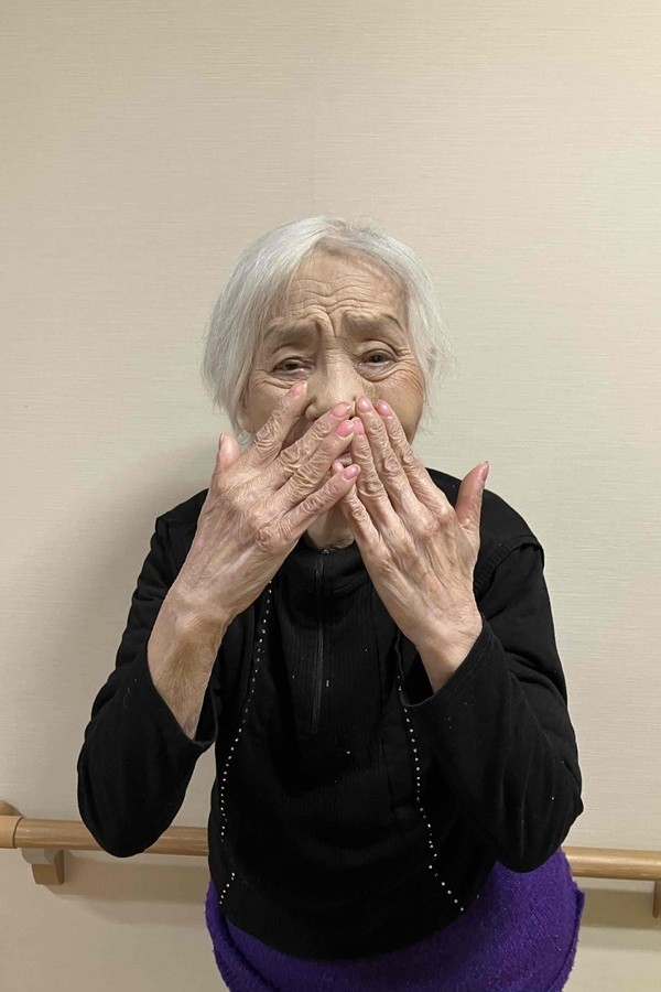 翌日も入居者様の指は綺麗なままで、昼食時には入居者様同士が指を見せ合いして「爪きれいやねぇ」、「それいい色やわ~」、「細い指をしていて羨ましいわ」と楽しそうに会話をされていました。