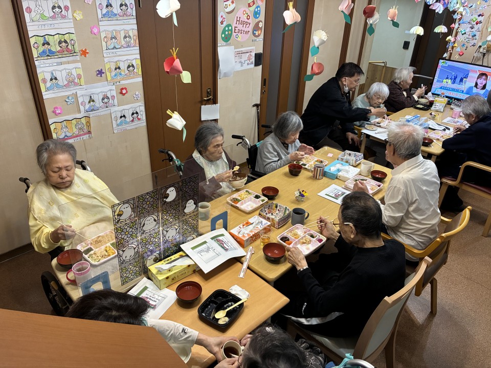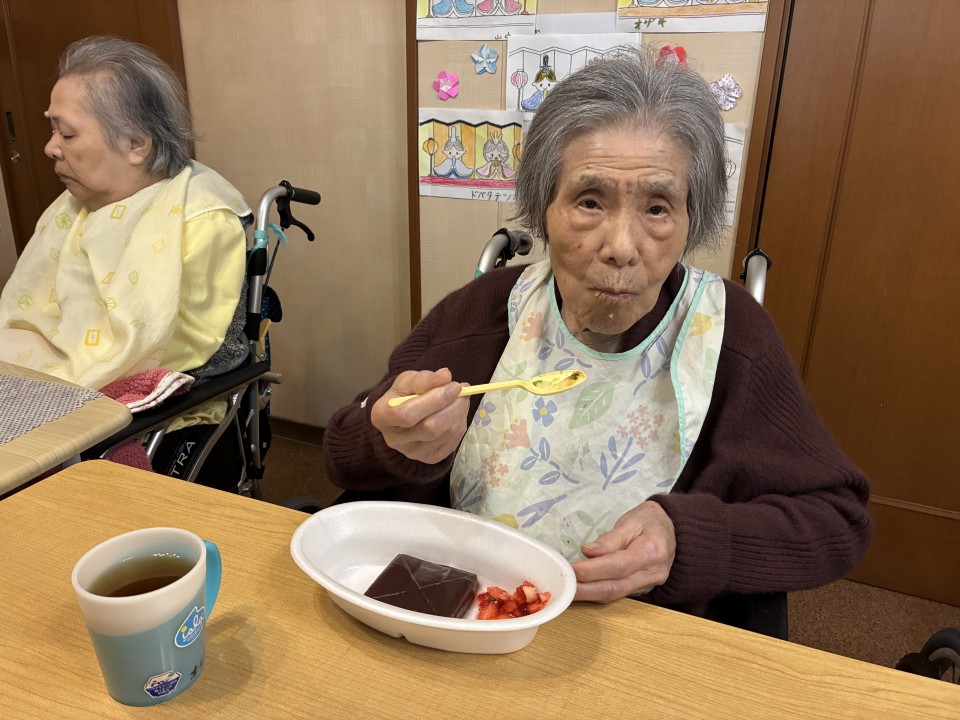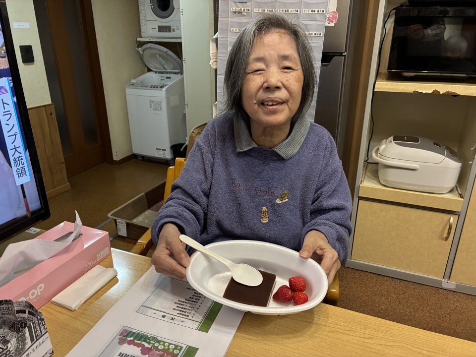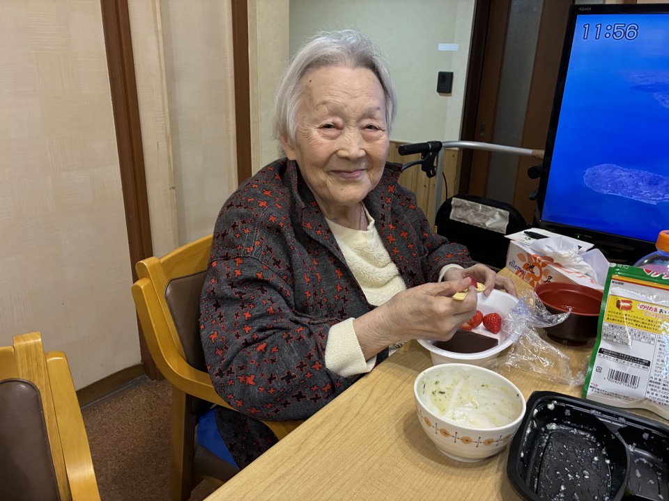 🍱お花見ご御膳だけでなく、デザートには差し入れの🍓付きの水羊羹も召し上がっていただきました♪
